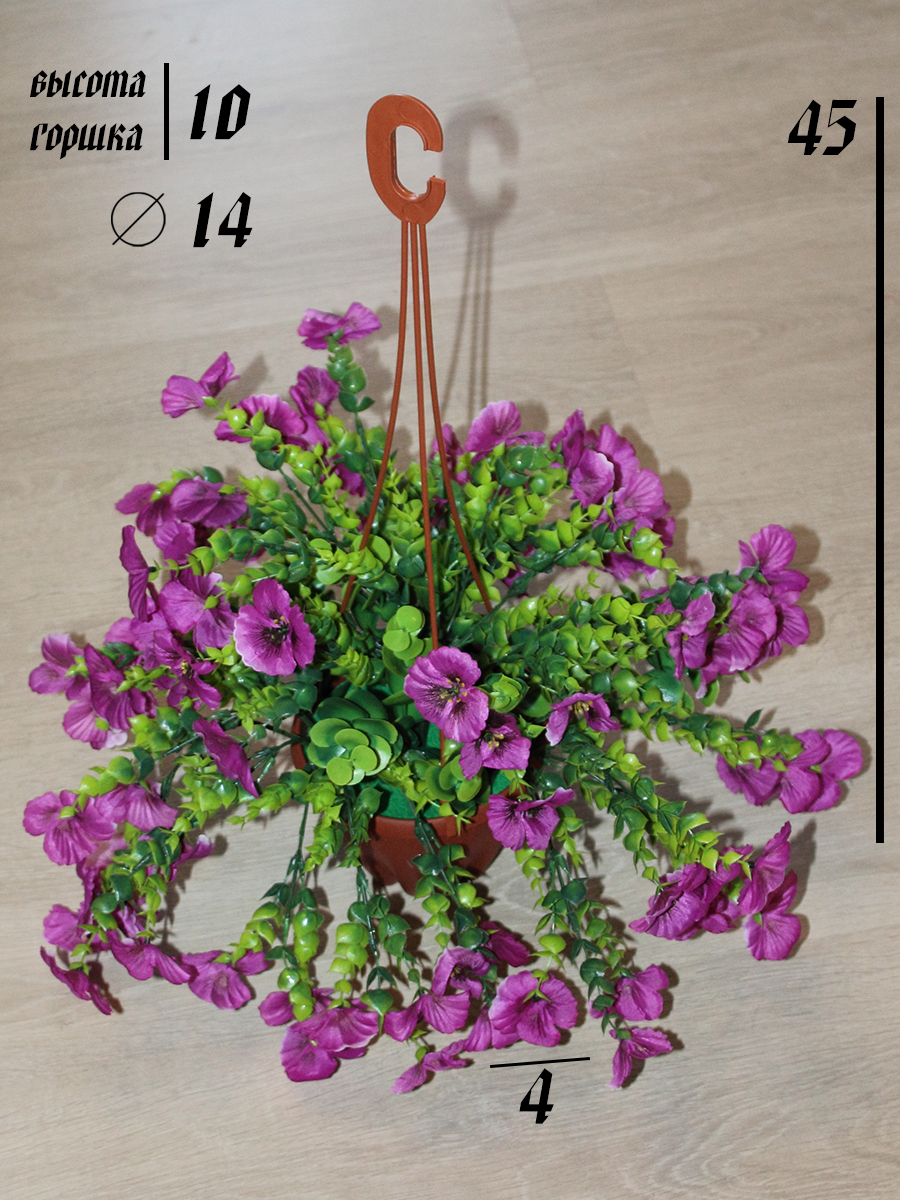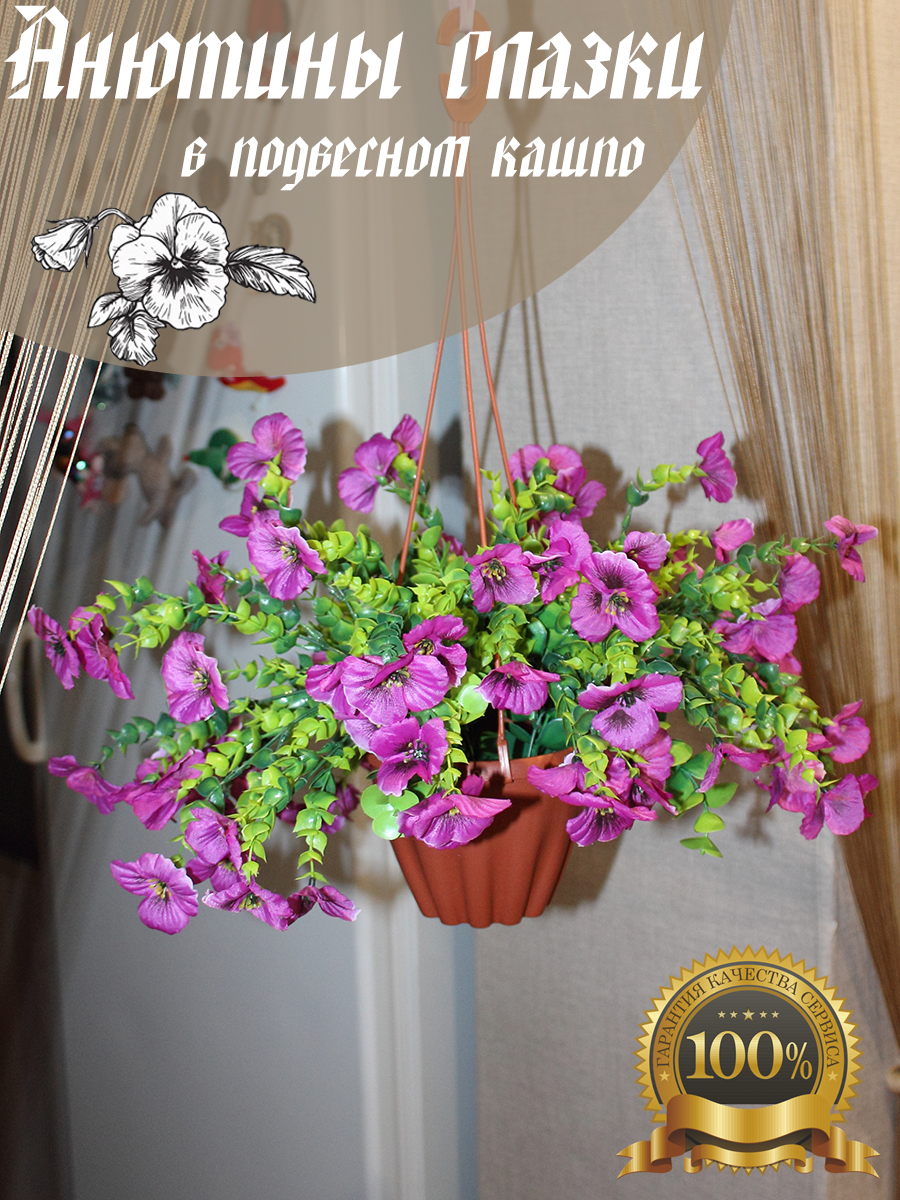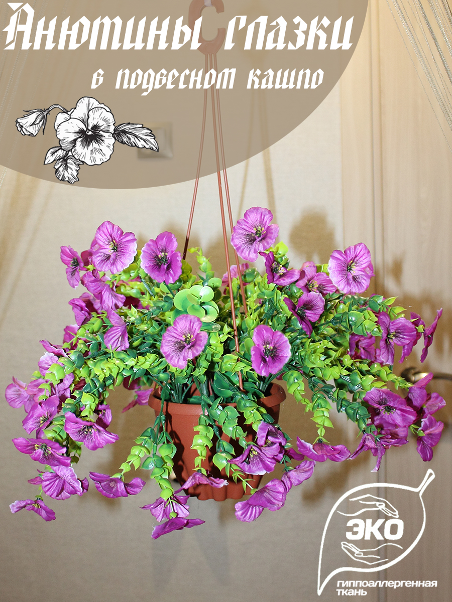 Искусственные анютины глазки в подвесном кашпо Е-01-09-1